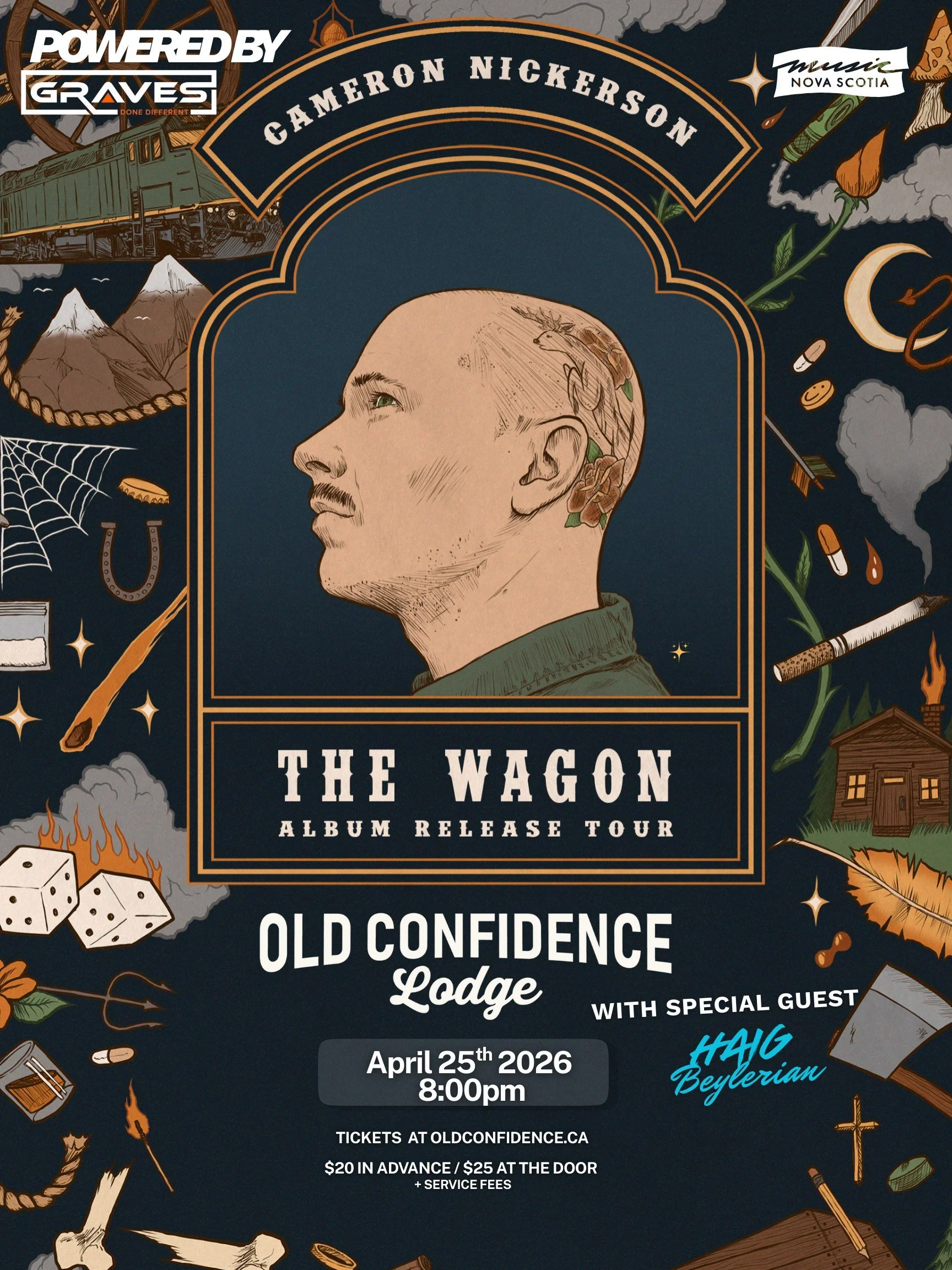 One of Atlantic Canada’s most compelling voices in modern bluegrass and country, Cameron Nickerson, returns to the stage at The Old Confidence Lodge in Riverport Nova Scotia for the official album release of “The Wagon“.